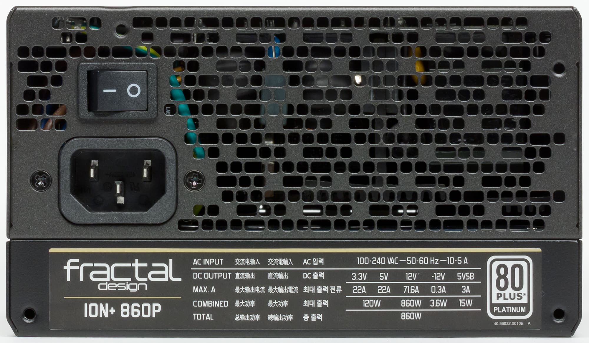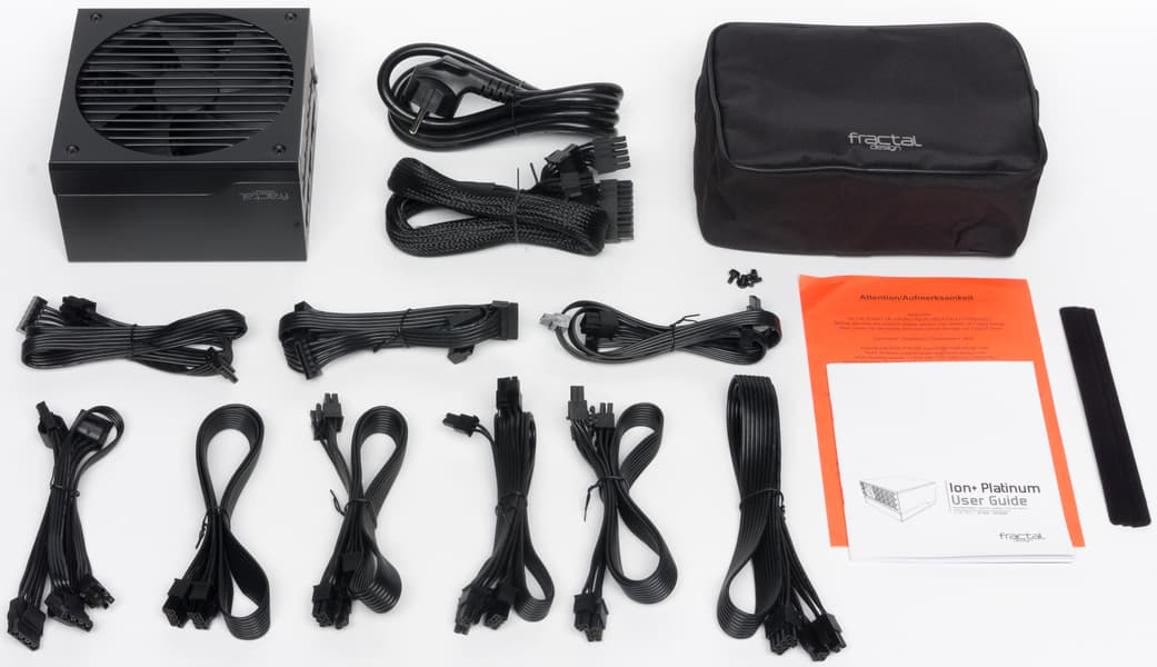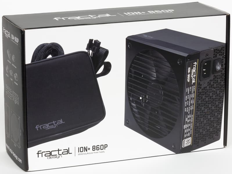 Блок питания Fractal Design Ion+ 860P (Platinum 860 Вт) является старшим представителем новейшей серии Ion+ блоков питания этого производителя. Помимо него в данной серии представлены решения мощностью 560, 660 и 760 Вт. Все указанные модели характеризуются наличием сертификата 80Plus Platinum и использованием исключительно японских конденсаторов, а также вентилятора на гидродинамическом подшипнике.