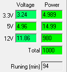 Первым этапом испытаний является эксплуатация блока питания на максимальной мощности продолжительное время. Такой тест с уверенностью позволяет удостовериться в работоспособности БП.