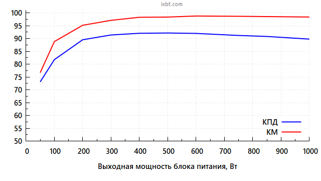 Представление эффективности компьютерного блока питания в виде значения КПД (коэффициента полезного действия) имеет свои традиции. Прежде всего, КПД — это коэффициент, определяемый соотношением мощностей на выходе и на входе блока питания, то есть КПД показывает эффективность преобразования электрической энергии. Обычному же пользователю данный параметр почти ничего не скажет, за исключением того, что более высокий КПД вроде как говорит о большей экономичности БП и более высоком его качестве. Зато КПД стал отличным маркетинговым якорем, особенно в комбинацией с сертификатом 80Plus. Однако с практической точки зрения КПД не оказывает заметного влияния на функционирование системного блока: он не увеличивает производительность, не снижает шум или температуру внутри системного блока. Это просто технический параметр, уровень которого в основном определяется развитием промышленности в текущий момент времени и себестоимостью продукта. Для пользователя же максимизация КПД выливается в увеличение розничной цены.