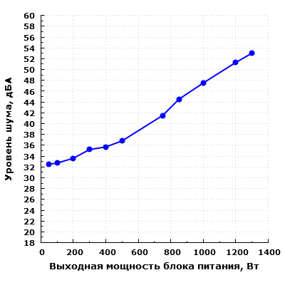 При работе с постоянно вращающимся вентилятором в диапазоне мощности до 500 Вт включительно шум блока питания находится на среднем уровне для жилого помещения в дневное время суток.