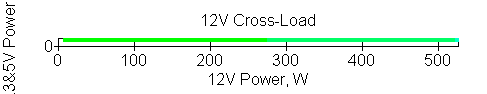При нагрузке через два разъема питания процессора максимальная мощность по каналу +12VDC составляет чуть менее 500 Вт при отклонении в пределах 3%.