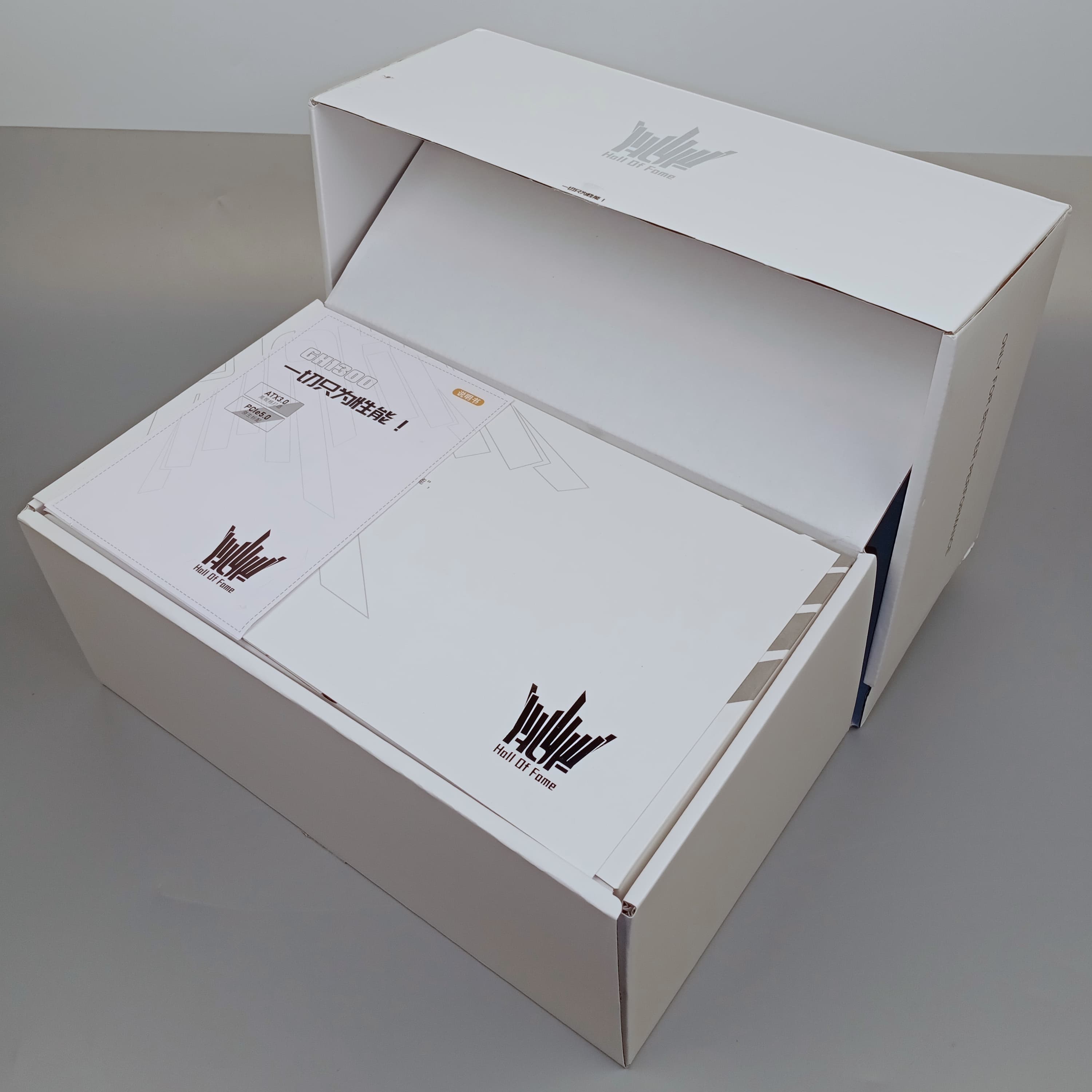 Поставляется блок питания в коробке с цветной полиграфией белого цвета. Коробка имеет довольно интересную конструкцию: крышка откидывает при помощи специального механизма.