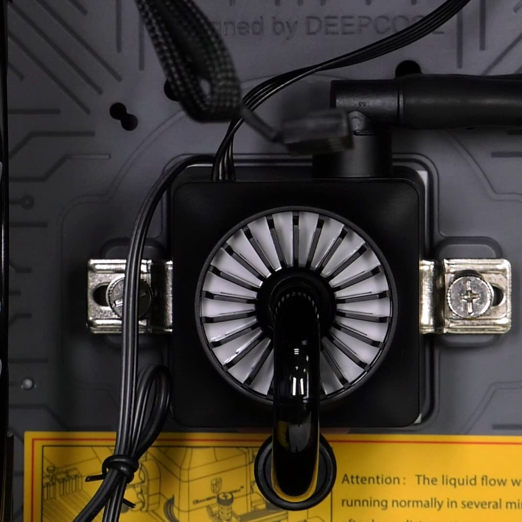 Комплект поставки помимо элементов системы охлаждения и системы подсветки включает набор винтов, одноразовые стяжки, небольшую инструкцию на английском языке, а также предустановленную систему жидкостного охлаждения Captain 280 с радиатором 280 мм и двумя вентиляторами типоразмера 140 мм, которая размещается внутри корпуса. Для демонстрации ее работы в переднюю панель корпуса интегрирован специальный элемент, представляющий собой прозрачную водяную трубку с потоковым ротором, которая позволяет визуально наблюдать за работой помпы.