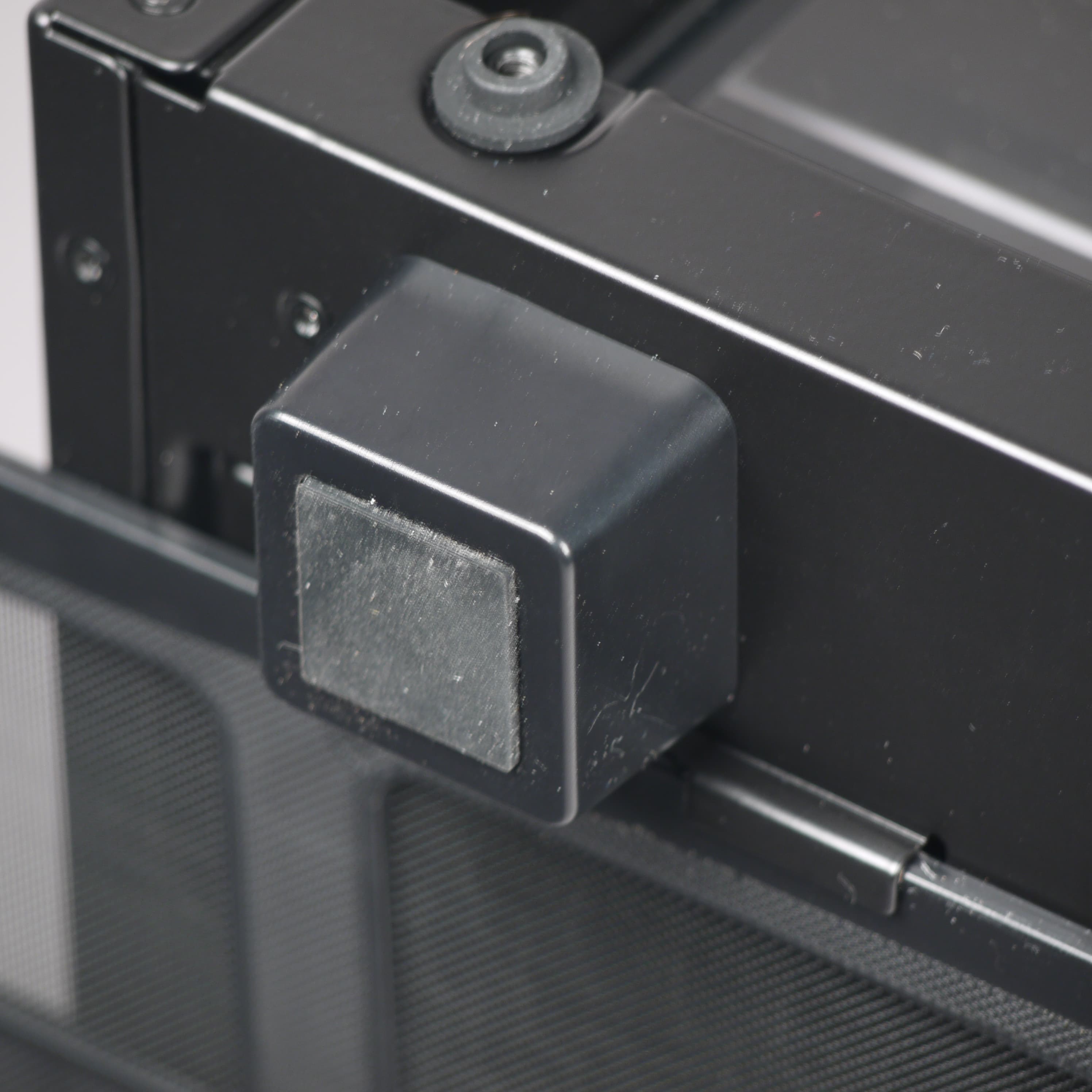 Обе боковые стенки крепятся винтами с накатной головкой, но разной конструкции. Если правая стальная стенка крепится привычным способом — двумя винтами, то крепление левой стеклянной стенки более сложное.