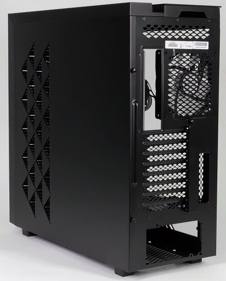 На остальных отверстиях фильтров нет вовсе, в том числе спереди и сверху. К форме и размеру вентиляционных отверстий есть большие претензии, особенно к их площади. На передней и верхней панелях отверстия спрятаны в декоративный выступ, что делает их малозаметными, однако с точки зрения аэродинамики это снижает их эффективность, так как воздушному потоку приходится совершать дополнительный поворот при движении. Эффективная площадь отверстий также небольшая, что при использовании компонентов с высоким тепловыделением приведет к сильному повышению температуры внутри корпуса.