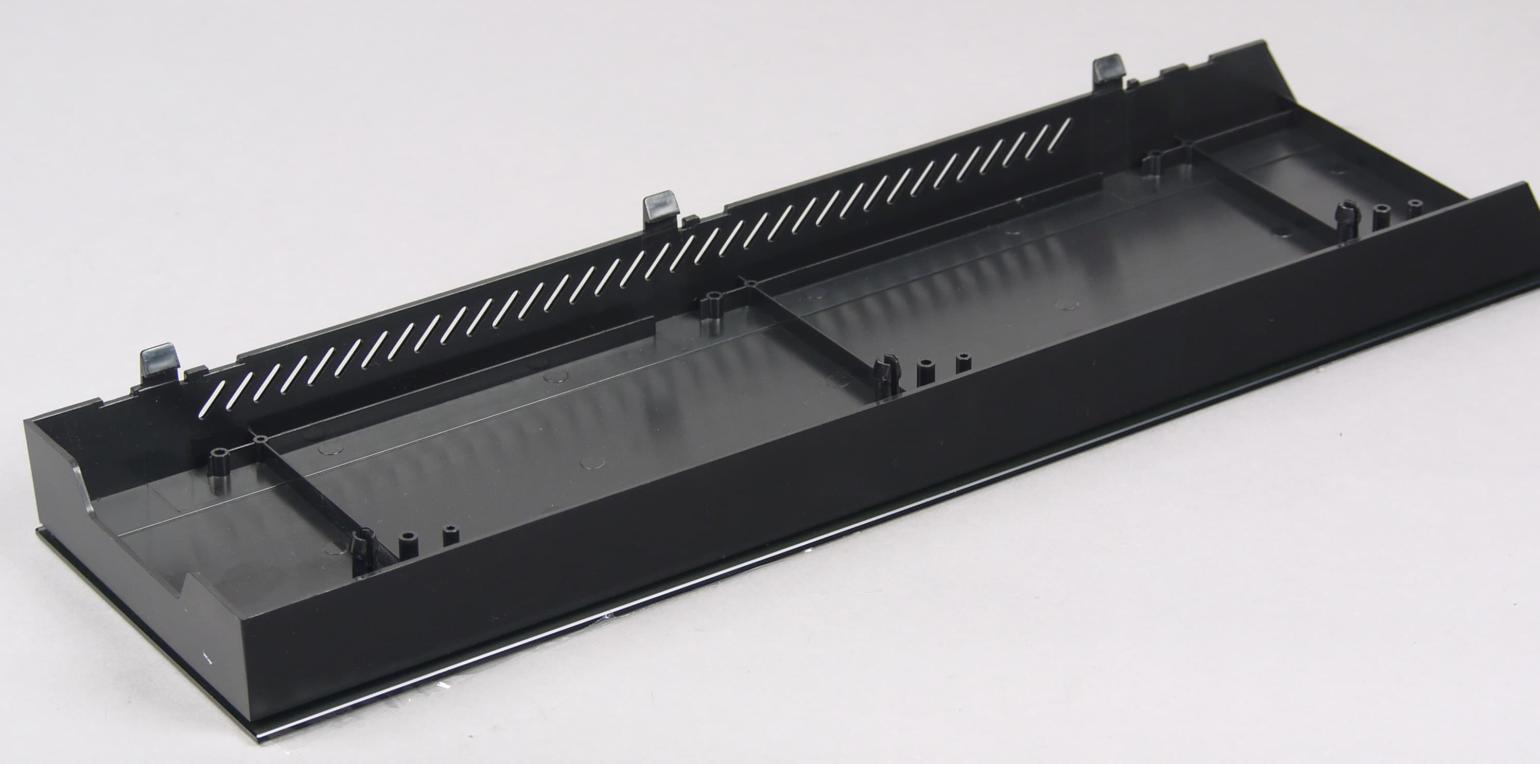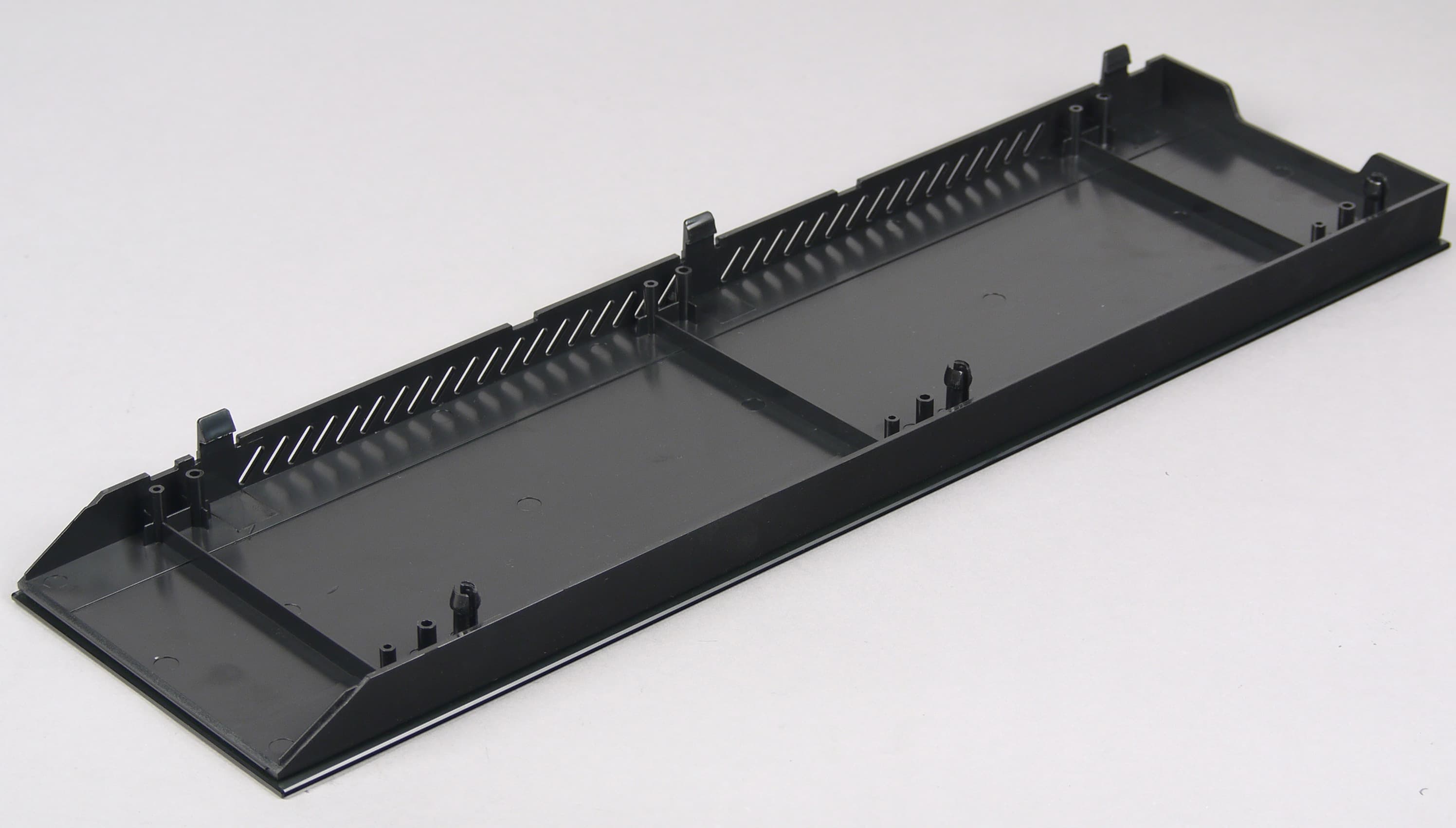 Передняя и верхняя панели имеют схожую конструкцию: внутренняя часть представляет собой вполне стандартную панель из черного пластика, сверху же она накрыта полупрозрачным закаленным стеклом.