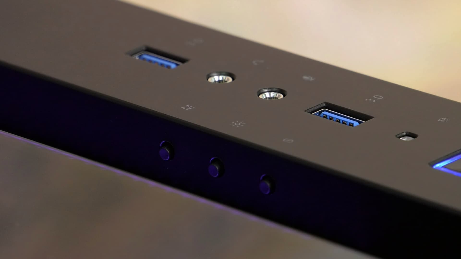 Порты ввода-вывода тут представлены минимальным набором: два порта USB 3.0 и два аудиоразъема (на наушники и микрофон). Расстояние между портами USB достаточно большое, что позволяет использовать широкие устройства. Но по современным меркам, особенно в случае дорогих продуктов, такого количества разъемов USB явно недостаточно.