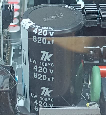 В блоке питания в низковольтной части установлены конденсаторы Elite и ChengX. Входной конденсатор тут выпущен под торговой маркой TK (Toshin Kogyo), это японский бренд, имеющий производственные площадки в Японии, Китае и на Тайване.