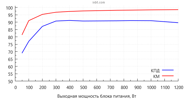 Представление эффективности компьютерного блока питания в виде значения КПД (коэффициента полезного действия) имеет свои традиции. Прежде всего, КПД — это коэффициент, определяемый соотношением мощностей на выходе и на входе блока питания, то есть КПД показывает эффективность преобразования электрической энергии. Обычному же пользователю данный параметр почти ничего не скажет, за исключением того, что более высокий КПД вроде как говорит о большей экономичности БП и более высоком его качестве. Зато КПД стал отличным маркетинговым якорем, особенно в комбинацией с сертификатом 80Plus. Однако с практической точки зрения КПД не оказывает заметного влияния на функционирование системного блока: он не увеличивает производительность, не снижает шум или температуру внутри системного блока. Это просто технический параметр, уровень которого в основном определяется развитием промышленности в текущий момент времени и себестоимостью продукта. Для пользователя же максимизация КПД выливается в увеличение розничной цены.