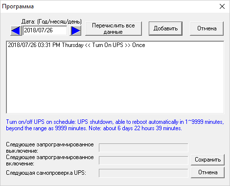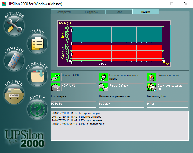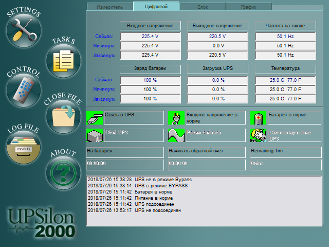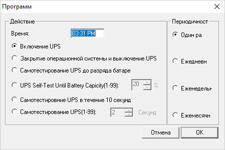 Поскольку ПО UPSilon 2000 унифицировано и совместимо с ИБП множества производителей, в программе не предусмотрены настройки, связанные с индивидуальными особенностями модели ИМПУЛЬС ФРИСТАЙЛ: нельзя, например, задать выходное напряжение или определить параметры сегментации нагрузок для двух групп выходных розеток. Всё это осуществляется через меню самого источника и не вызывает сложностей, поскольку такие настройки обычно производятся однократно при первоначальной установке и настройке.