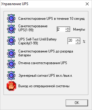 Меню Control в основном сводится к различным вариантам самотестирования ИБП.