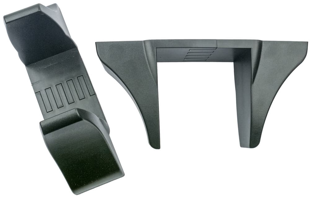 Как сказано выше, в комплекте есть приспособления для обоих вариантов: металлические фронтальные крепления для стойки и пластиковые опоры для установки на полу или на столе.