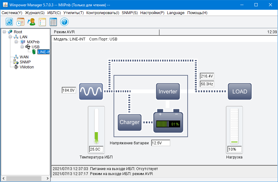 Поддержка стандарта Smart Battery не заявлена и не обнаружена нами при проверке: после подключения источника к USB-порту компьютера новое устройство «Батарея ИБП HID» не появляется. Но сожалеть об этом большинство владельцев вряд ли будет, поскольку возможности получаются весьма скудными.