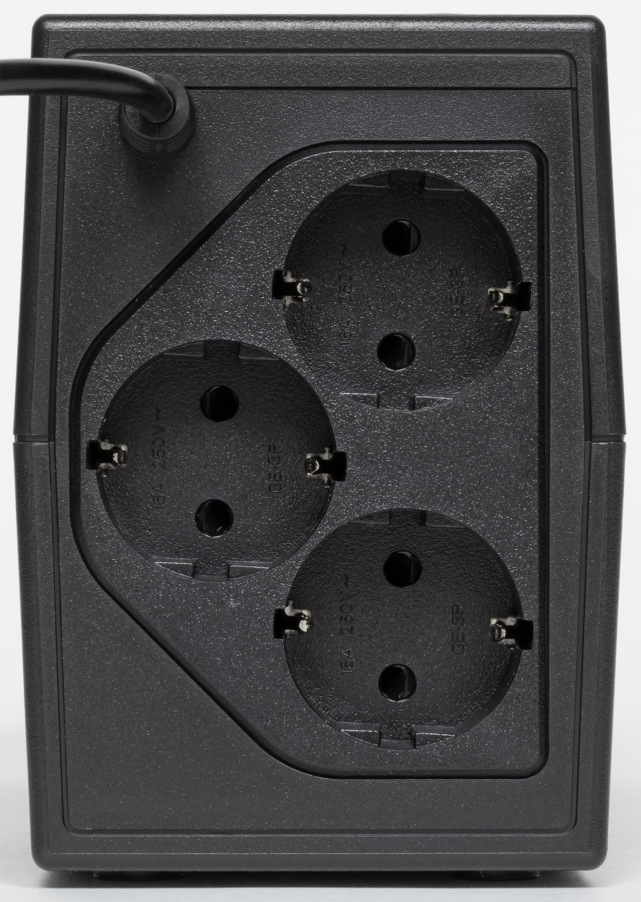 Количество выходных розеток у обеих моделей одинаковое — три, но у Back Basic S Euro это CEE7/4 (или Schuko, с двумя боковыми плоскими контактами защитного заземления), а у Back Basic — C13 (IEC 60320). Все они подключены к инвертору/AVR и обеспечены бесперебойным питанием.