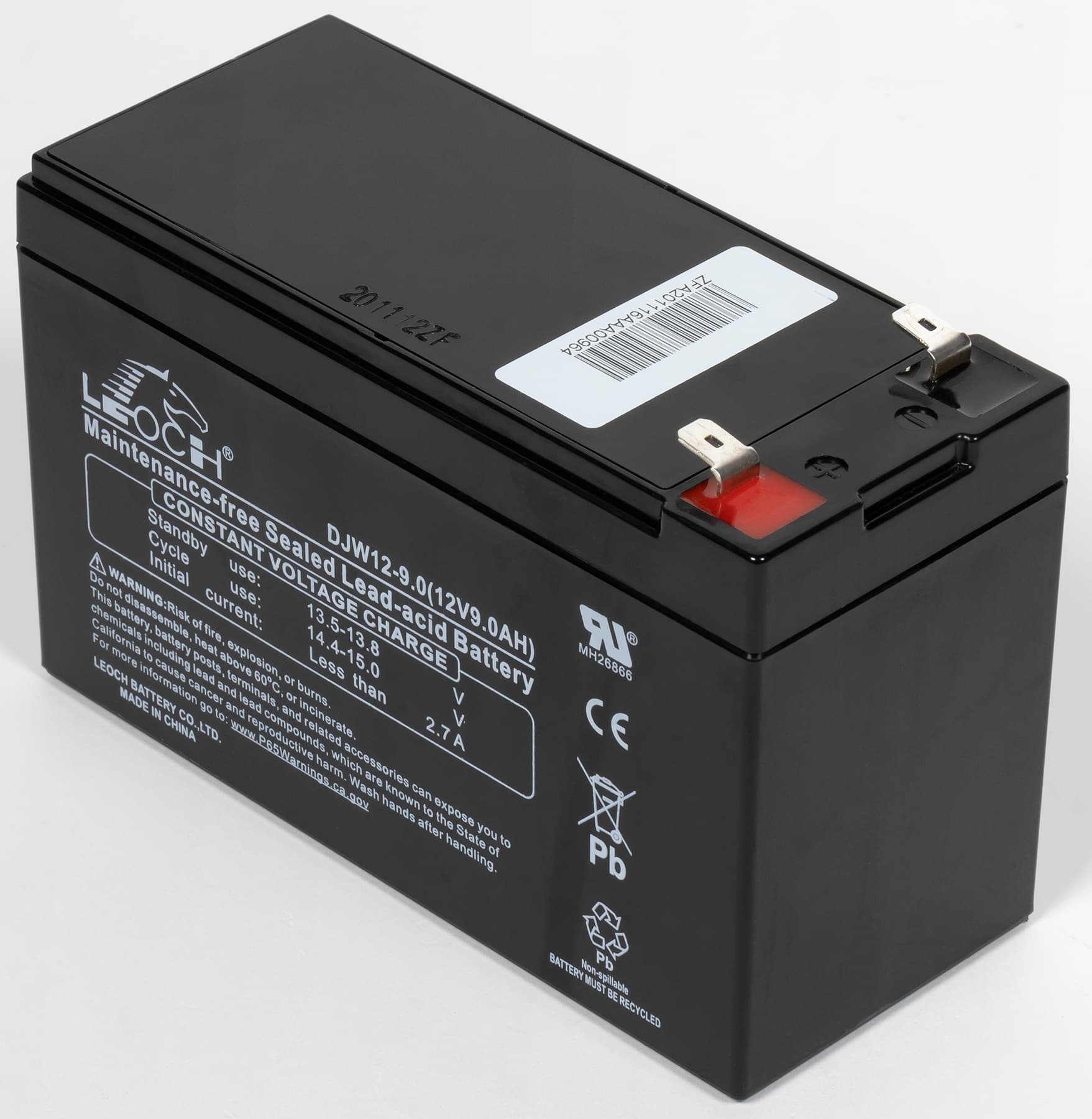 В наших экземплярах были установлены свинцово-кислотные (все-таки со свинцом, иного и ожидать трудно в подобных моделях) аккумуляторные батареи Leoch DJW-9.0 с заявленными напряжением 12 В и емкостью 9 А·ч.