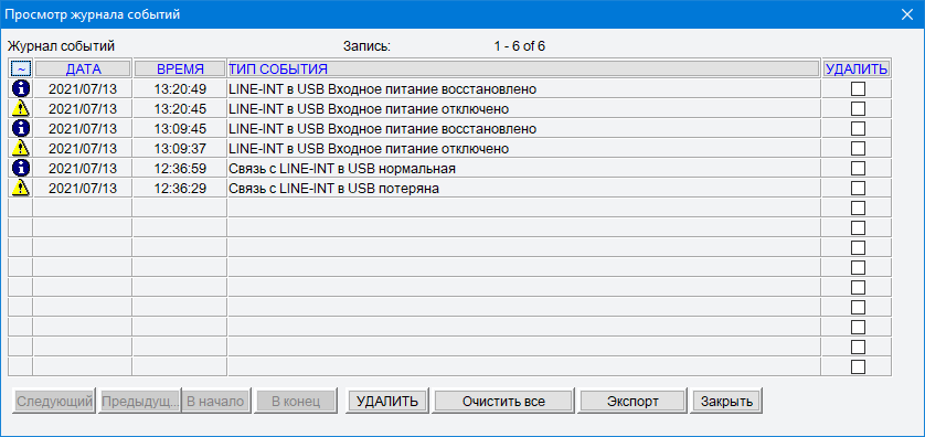 Ведется журнал событий, который можно просматривать и чистить от лишнего, для содержимого предусмотрен экспорт в формате CSV.