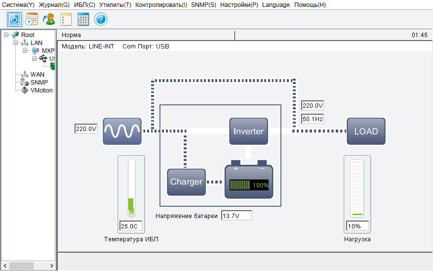 Теперь о том, насколько точно отображаются параметры. Естественно, значения определяются не программой, а поступают из ИБП.
