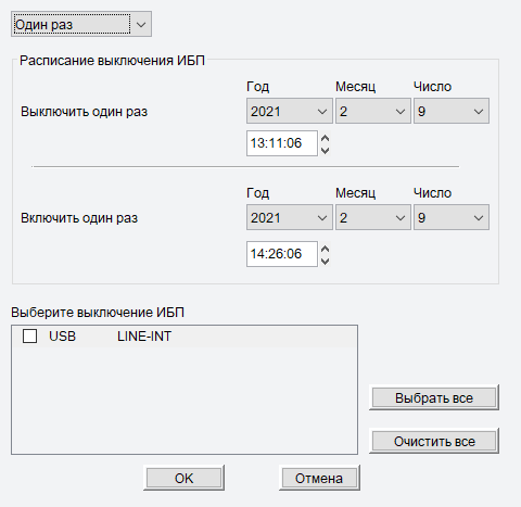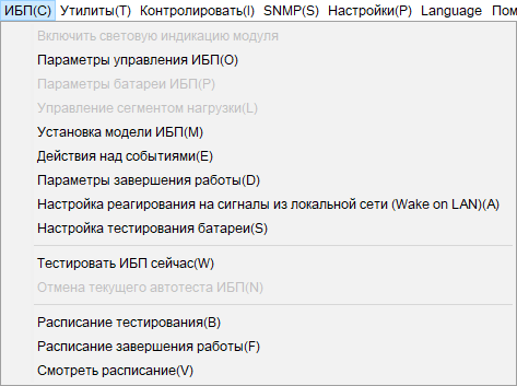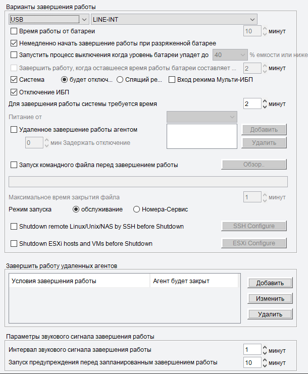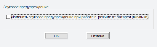 В параметрах управления ИБП единственная строчка — отключение звуковых сигналов при работе от батарей. Они действительно отключаются, но лишь до тех пор, пока работает программа: если выключить компьютер, на котором она запущена, то сигналы возобновятся.