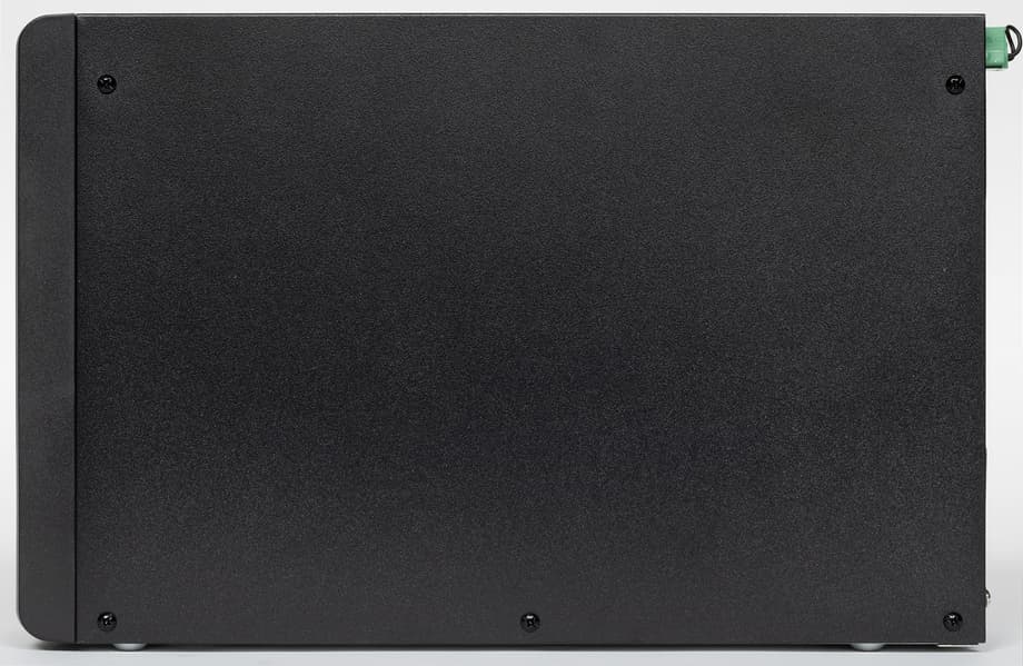Благодаря отсутствию встроенных АКБ и трансформатора системы AVR источник получился поразительно компактным и легким, хотя в конструкции в основном используется сталь — и шасси, и наружные крышки выполнены из металла, пластиковой сделана только фронтальная панель. Даже ножки металлические — штампованные выступы на днище, их неплохо было бы оснастить хоть какими-то наклейками.