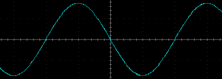 Вот ее внешний вид на нагрузках 100 Вт и 400 В·А (PF = 0,7) с установкой частоты на выходе 50 Гц, цена деления по горизонтали здесь и далее 5 мс: