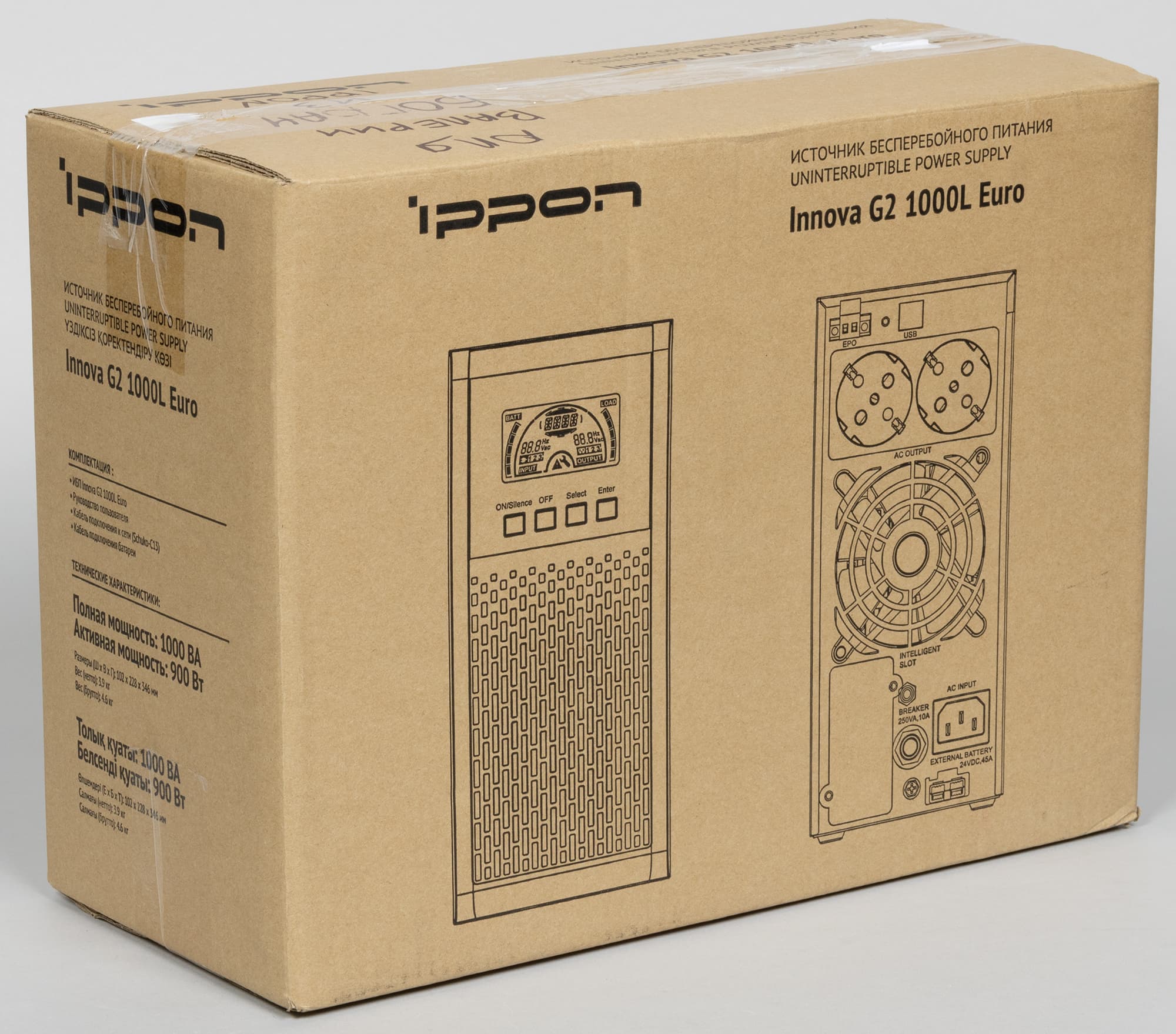 Конечно, в обоих этих случаях можно «приколхозить» и что-то свое, но подавляющее большинство потребителей подобной самодеятельностью заниматься не будет. Поэтому мы с интересом приступили к тестированию впервые за многие годы попавшего к нам представителя третьего типа — ИБП Ippon Innova G2 Euro 1000L, у которого встроенных батарей нет вовсе (а потому сам источник получился компактным и легким), владельцу предлагается приобрести набор внешних АКБ в соответствии со своими потребностями, предпочтениями по выбору изготовителя и финансовыми возможностями.