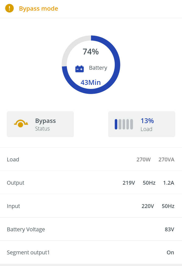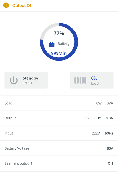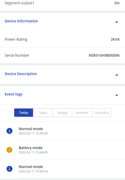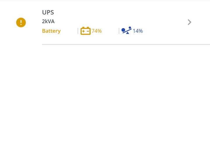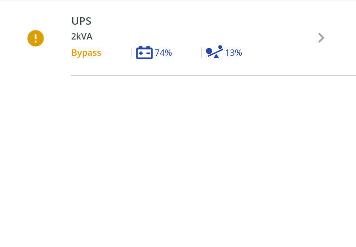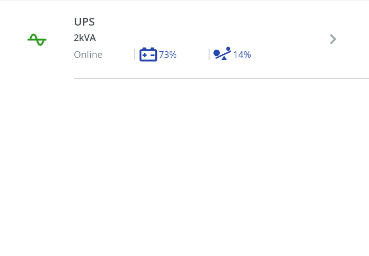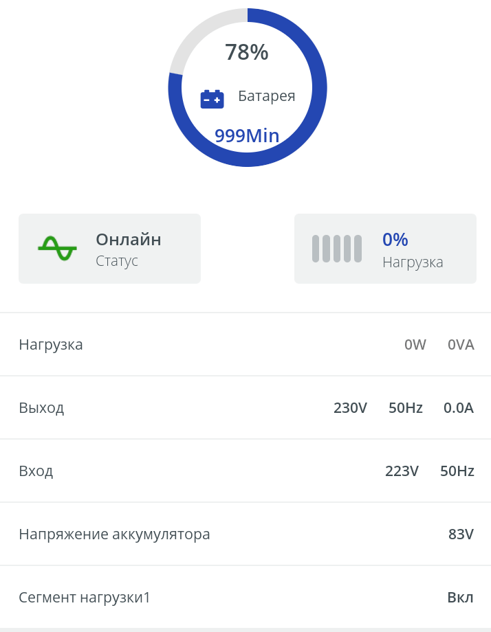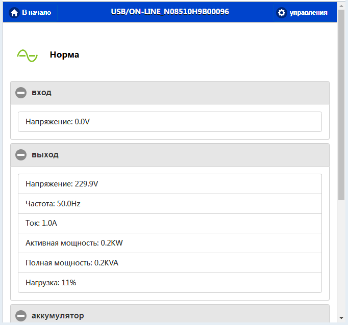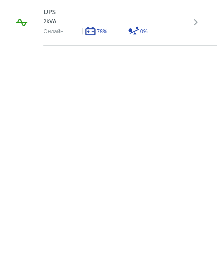 При наличии нескольких ИБП, подключенных к облачному сервису, приложение позволит просматривать их списком с кратким описанием состояния (у нас по понятным причинам получилась только одна строчка):