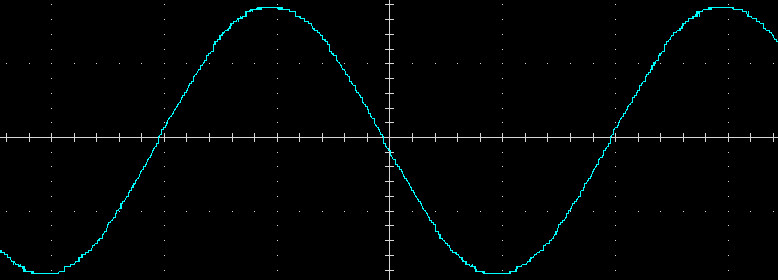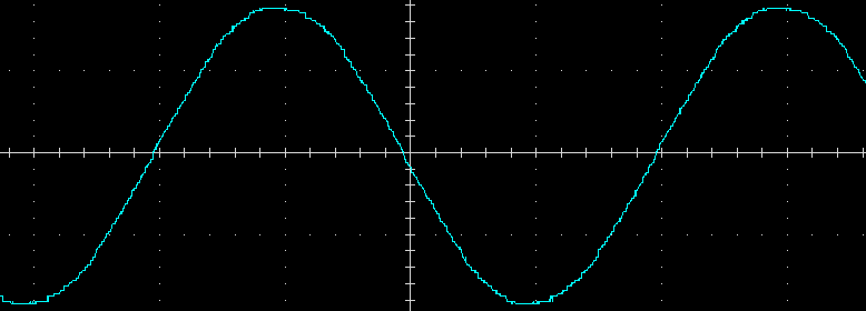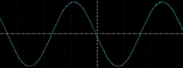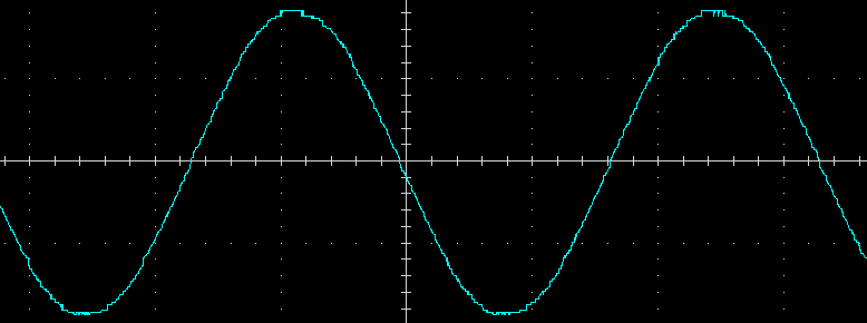 Вот ее внешний вид на нагрузках 200 Вт и 400 В·А (PF = 0,7) с установкой частоты на выходе 50 Гц, цена деления по горизонтали здесь и далее 5 мс: