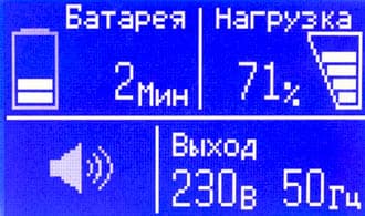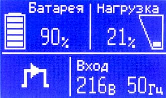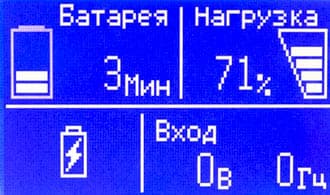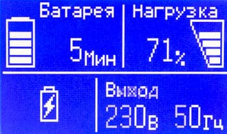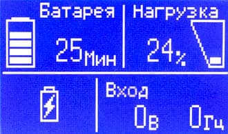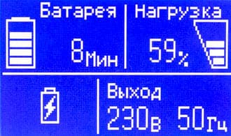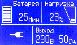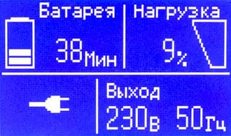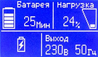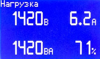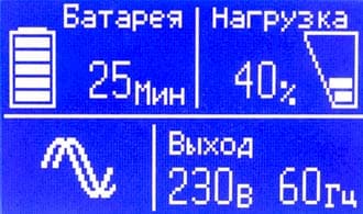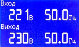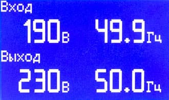 При смене режима работы, величины нагрузки, напряжения на входе и т.п. отображаются и соответствующие изменения, но не сразу, а с задержкой, которая может достигать 25-30 секунд.
