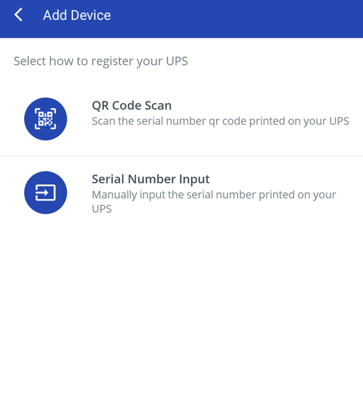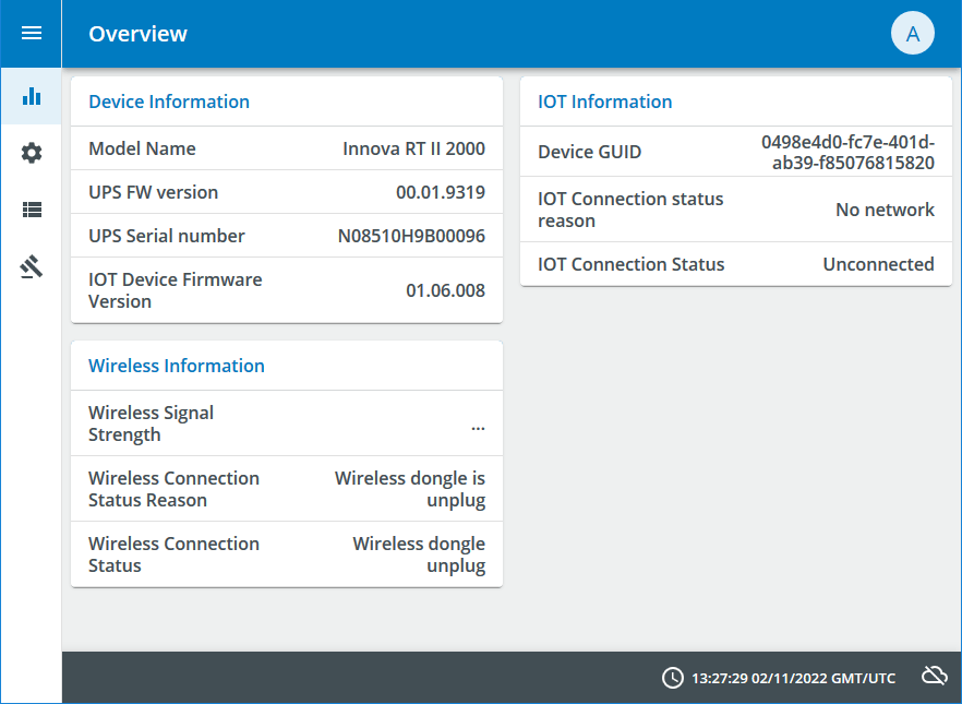 Добавлять устройство можно по серийному номеру или по QR-коду, наклейки с которыми имеются в задней части корпуса. Если источник уже установлен в стойку и доступ к этим наклейкам не слишком удобен, серийный номер можно посмотреть в меню, пункт «Идентификация». На последнем этапе указывается способ подключения ИБП к интернету: через проводную (штатный адаптер Ethernet) или беспроводную (опциональный Wi-Fi) сеть.