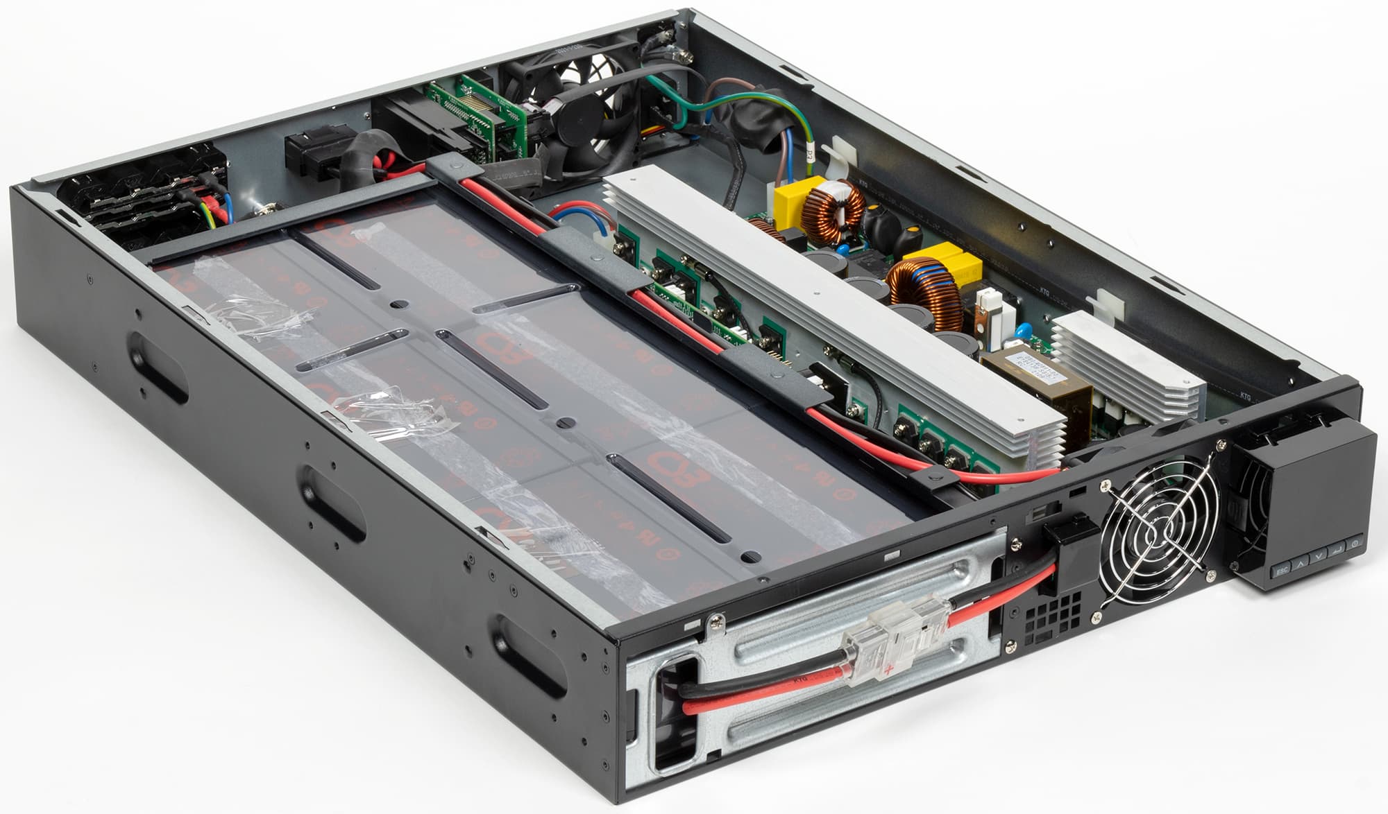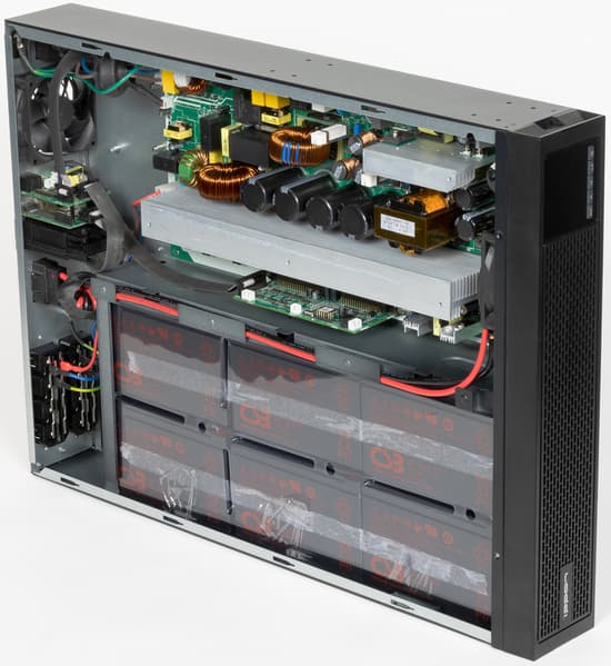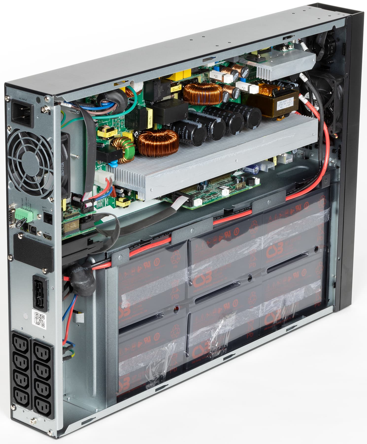 С тем же названием предлагаются еще более мощные источники на 6 и 10 кВ·А, которые состоят из трех блоков — преобразовательного, батарейного и выносного PDU/MBP.