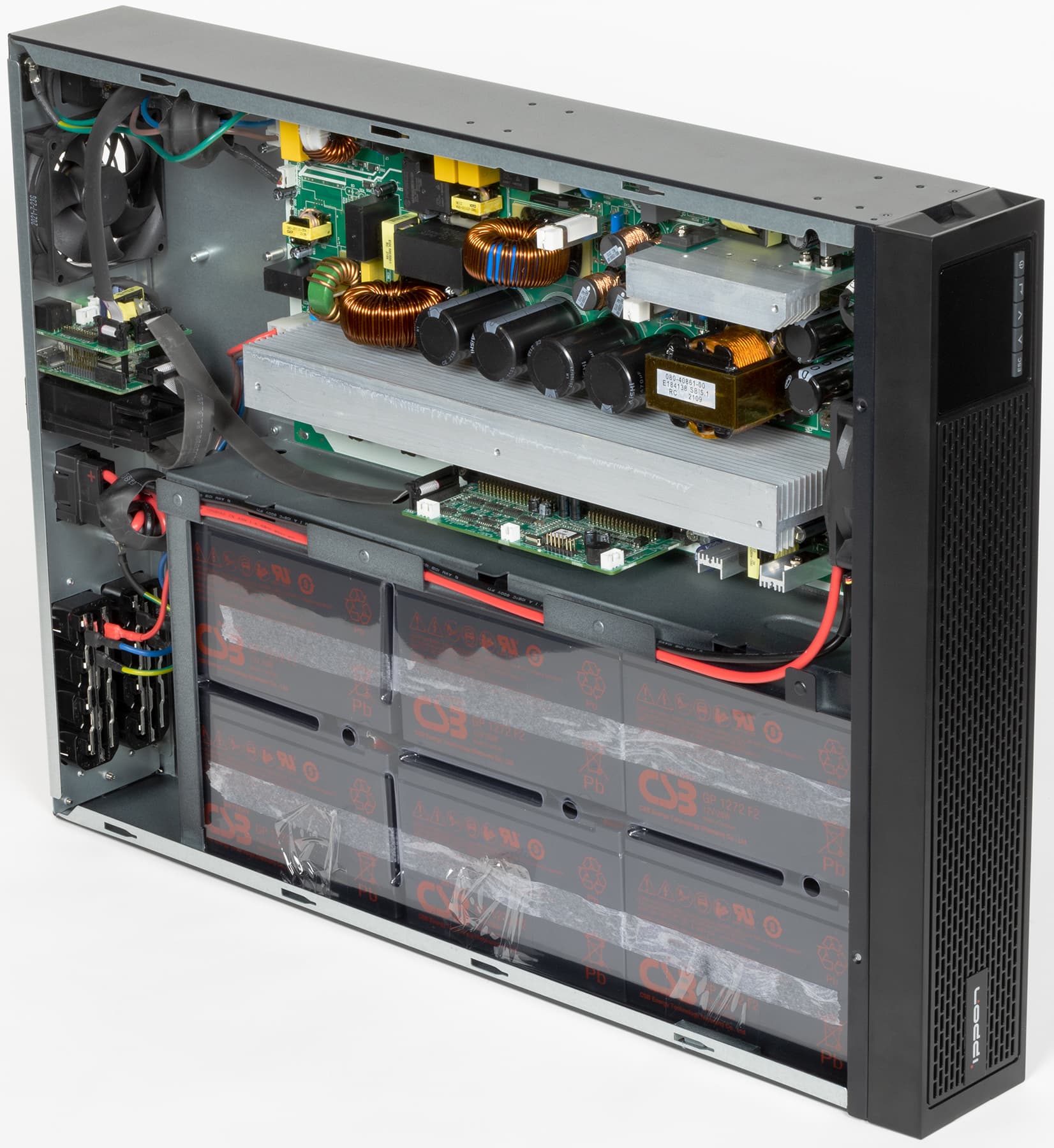 Представленные компанией Ippon источники бесперебойного питания линейки Innova RT II основаны на топологии двойного преобразования (On-line, «онлайн»), предусматривающей выпрямление входного переменного тока с последующим преобразованием снова в переменный, но уже с точно выдержанными параметрами (форма синусоиды, частота, напряжение). При этом отсутствует тяжелый и громоздкий низкочастотный трансформатор системы AVR, имеющийся в линейно-интерактивных ИБП, а длительность переходных процессов при переключении на батарею или обратно равна нулю.