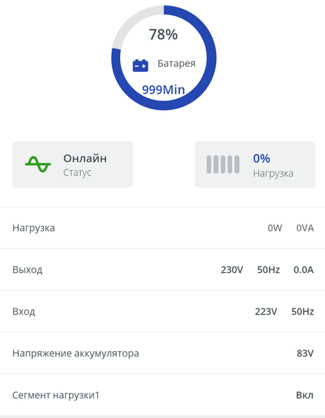 Окончательный вердикт: наличие встроенных сетевых карт Ethernet в моделях Ippon Innova RT II не позволяет управлять этими источниками и наблюдать за их состоянием через локальную сеть, но дает возможность контроля через облачный сервис и мобильное приложение. Во многих случаях работа через интернет удобна, особенно если учесть, что это приложение позволяет наблюдать за целым набором ИБП, но не всегда хочется использовать мобильное устройство, а аналогичные программы для ПК не упоминаются. К тому же порой необходимость взаимодействия через интернет может противоречить политике безопасности, принятой в компании, где используется ИБП, и тогда, помимо чисто визуального, останутся два способа наблюдения, один бесплатный — через локальное USB-подключение, а второй связан с заметными дополнительными расходами: купить и установить опциональную карту SNMP.