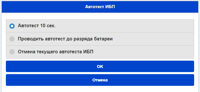 Какие-либо настройки отсутствуют, а из возможностей управления имеется только автотест батареи (придется ввести пароль — тот же, что и для Winpower: Administrator).