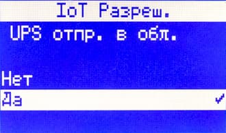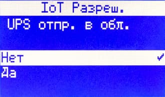 Следующий шаг — добавление устройства, то есть нашего ИБП. Сразу скажем: взаимодействия через локальную сеть, к проводному сегменту которой подключен ИБП, а к беспроводному смартфон, не будет, даже если адресное пространство у этих сегментов общее, работа может вестись только через облачный сервис. Поэтому сначала обращаемся к встроенному меню источника, где в разделе «Настройки» мы видели пункт «IoT Разреш.», и уточняем: есть ли там разрешение; по умолчанию его нет (настройка имеет и второе название — «UPS отпр. в обл.», то есть отправка в облачный сервис), меняем на «Да».