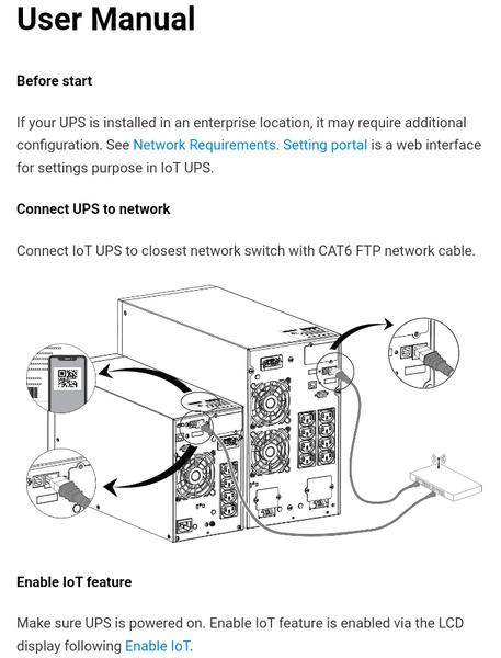 И особенно интересно, что логин и пароль для входа на упоминавшуюся выше страницу «IoT setting portal» мы нашли именно в User Manual для приложения WinPower View — попробуй догадаться, что обращение к локальному сетевому адресу ИБП описано в инструкции для приложения, взаимодействующего с этим источником только через интернет!