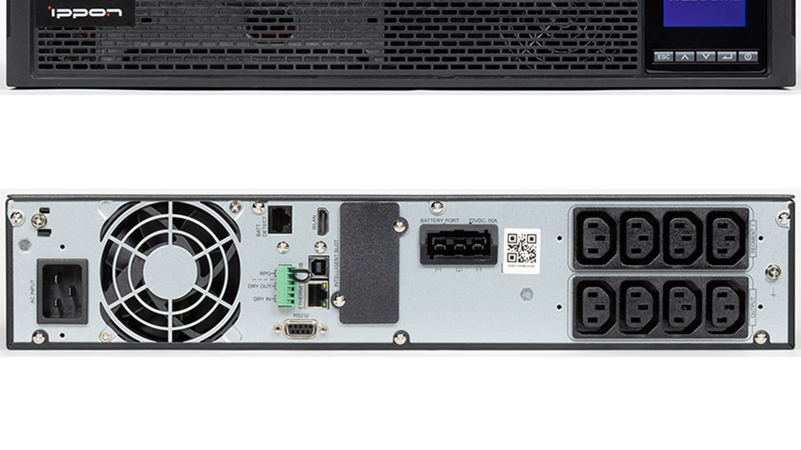 Сегодня в линейку входят четыре модели с разной максимальной мощностью нагрузки: 1000, 1500, 2000 и 3000 В·А, которые на официальном сайте помечены как новинки. Все они предусматривают два способа установки: горизонтальный в 19-дюймовую стойку и вертикальный (на столе или на полу). В отличие от ранее побывавших у нас представителей других линеек Ippon, эти ИБП уже не предлагаются с двумя вариантами выходных розеток и оснащаются только выходами C13 (у модели на 3 кВ·А добавляется разъем С19).