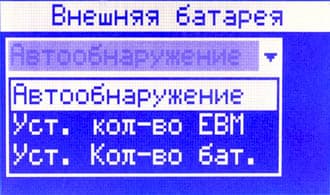 - два коннектора для дополнительных внешних батарейных модулей EBM: трехконтактный силовой (до 50 А) для цепей питания и восьмиконтактный сигнальный для схемы автоопределения,