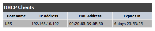 Подключаем ИБП к роутеру патч-кордом и проверяем в пункте меню «Идентификация» состояние подключения — получен или нет IP-адрес (никаких ручных настроек для него нет, очевидно, что используется DHCP, и этот механизм должен быть задействован в сети).