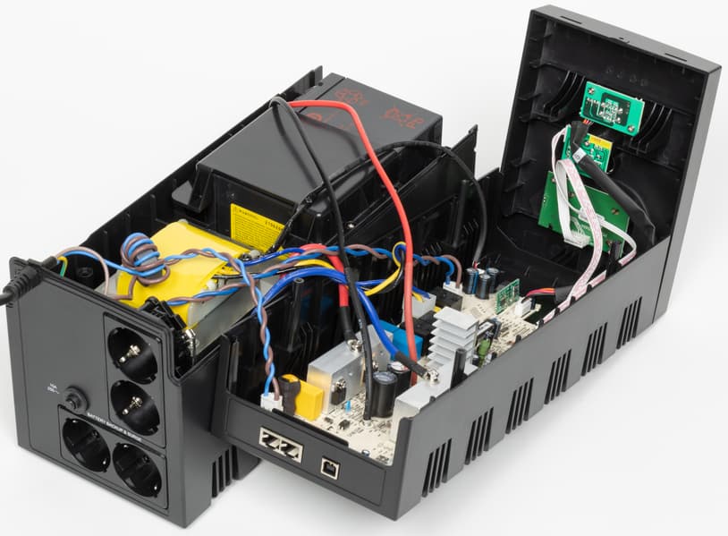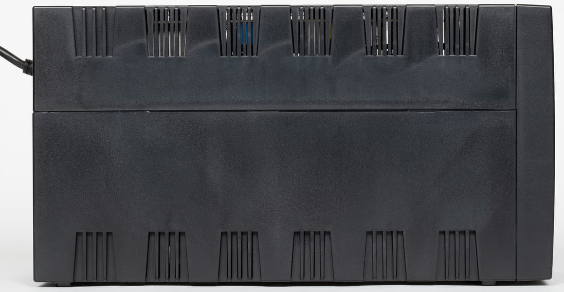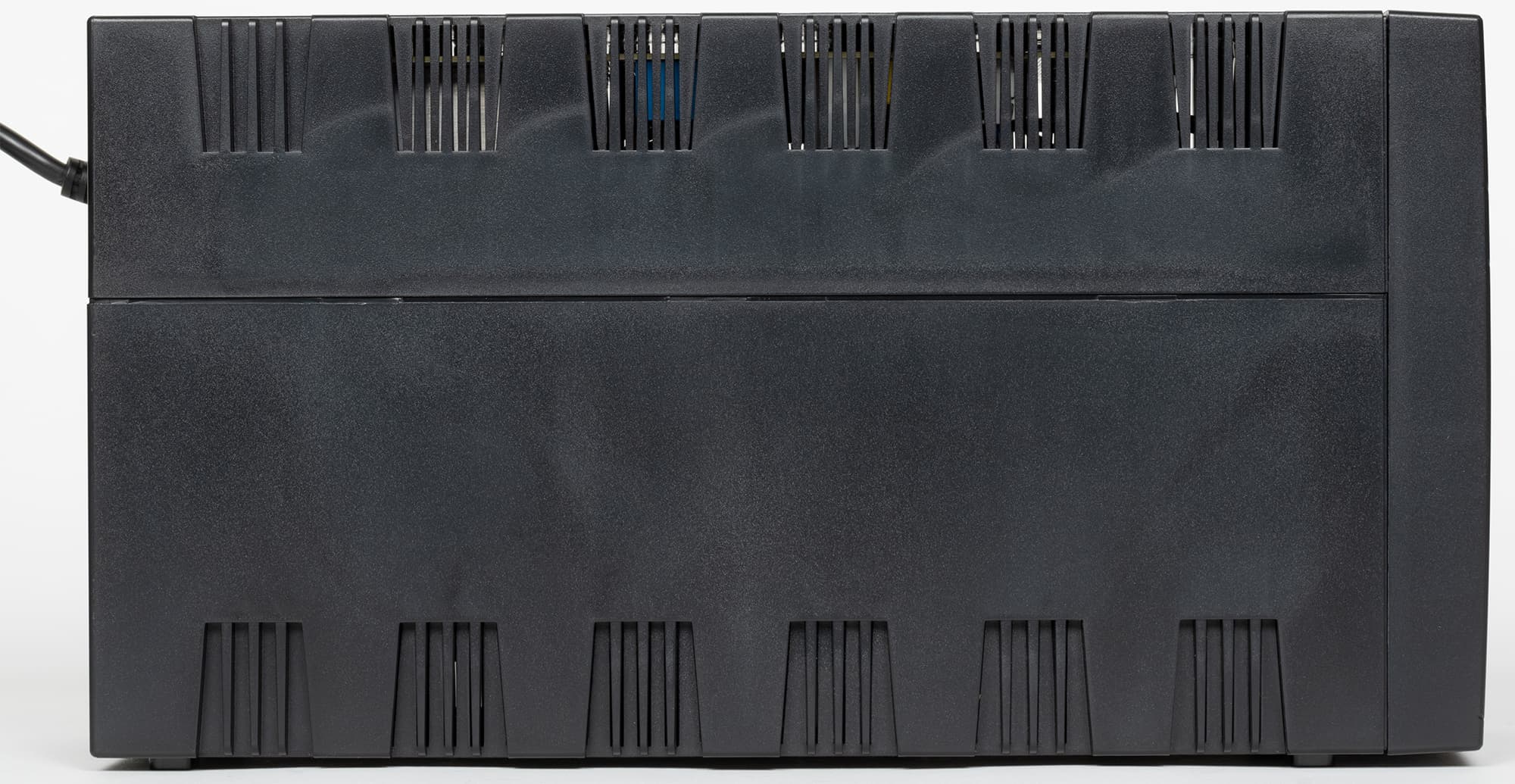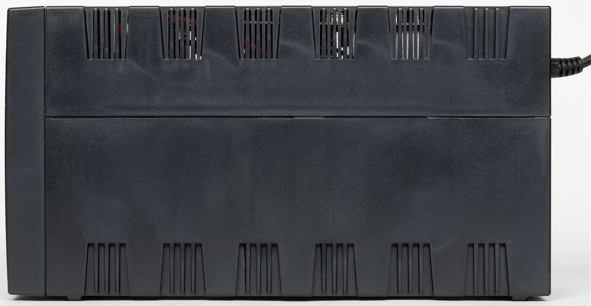Вентиляционные прорези имеются на боковых плоскостях, а охлаждение у моделей линейки разное: у младшей, на 1200 В·А, оно пассивное, а у более мощных есть вытяжной вентилятор, выведенный на заднюю стенку.