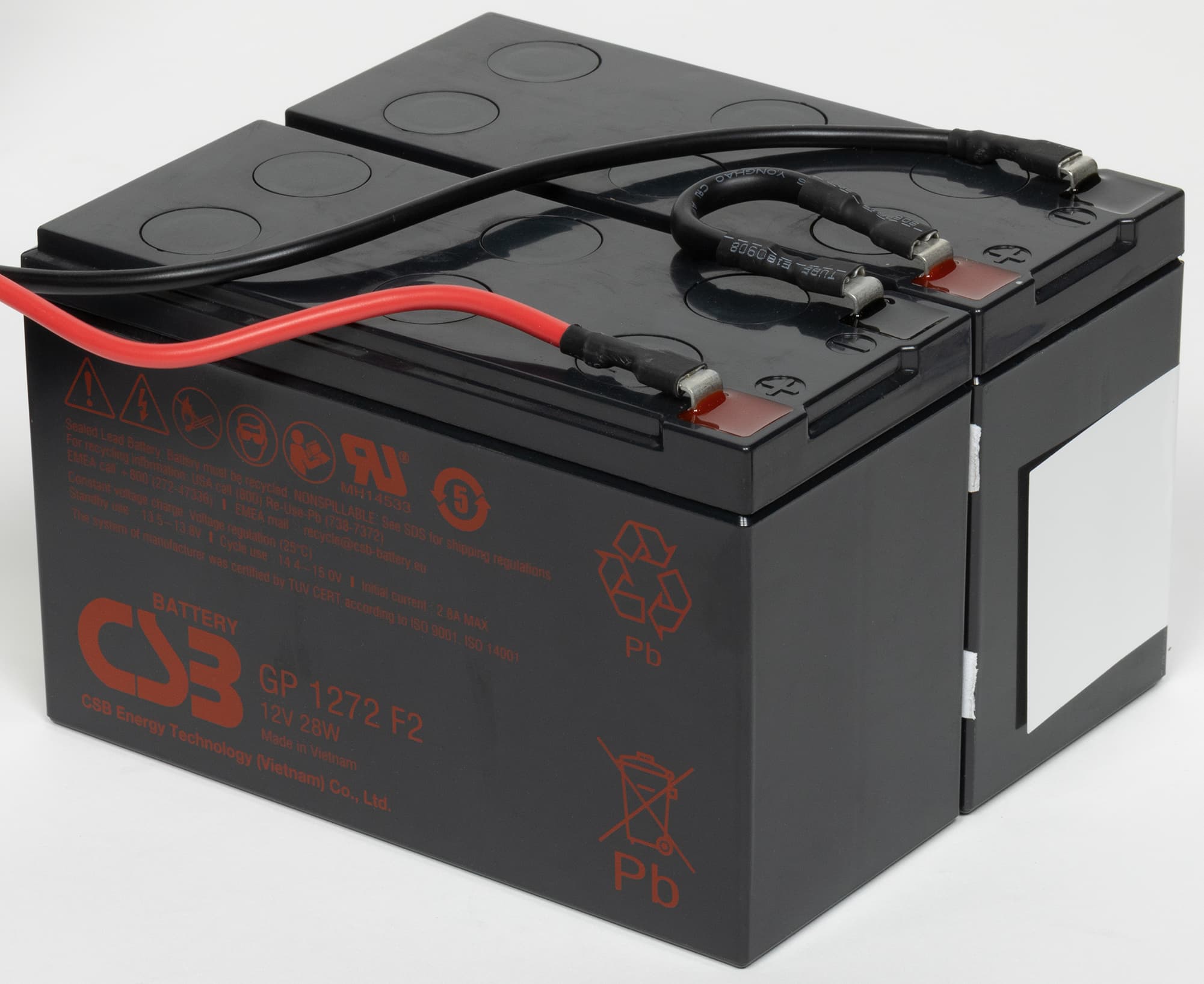 В нашем экземпляре Ippon Smart Power Pro II Euro 1200 были установлены две свинцово-кислотные аккумуляторные батареи CSB GP 1272 F2 с заявленными напряжением 12 В и емкостью 7 А·ч, соединенные последовательно. Они становятся доступными после снятия верхней крышки корпуса и крепятся пластиковой П-образной скобой с четырьмя саморезами.