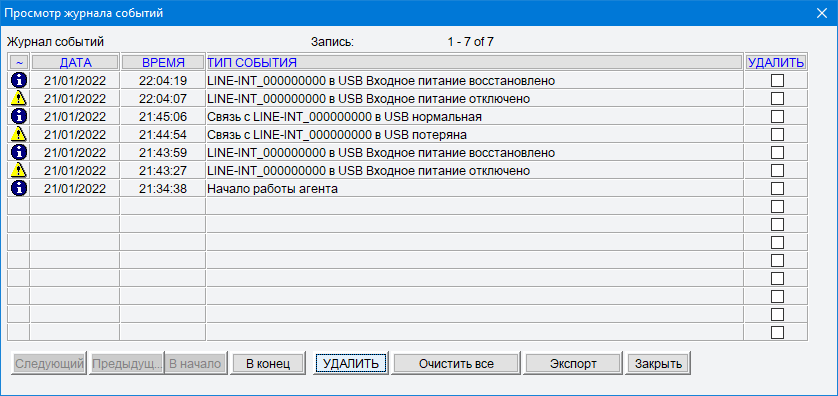 Ведется журнал событий, который можно просматривать и чистить от лишнего, для содержимого предусмотрен экспорт в файл формата CSV.