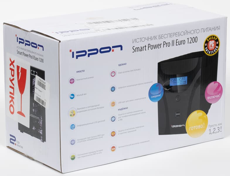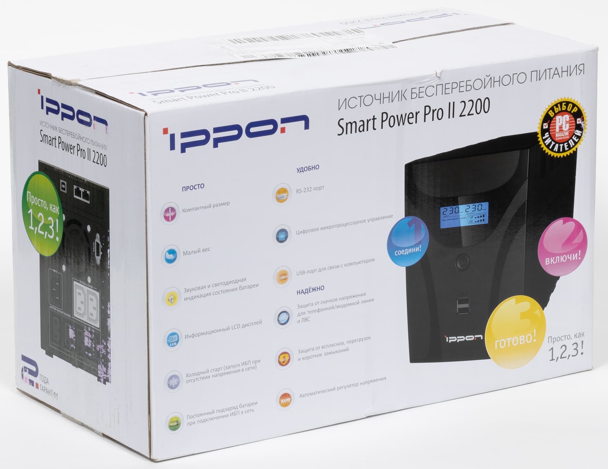 Мы подробно рассмотрим младшую модель Ippon Smart Power Pro II Euro 1200, но приведем сведения и для более мощного устройства Smart Power Pro II 2200.