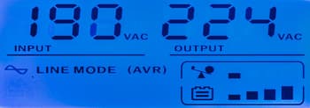Спецификация гласит: «Время переключения — типовое 4-8 мс, макс. 10 мс». Но при этом не уточняется, о каком именно переключении идет речь, а вариантов много: с AVR на прямую трансляцию входной сети, с инвертора на трансляцию, обратные операции, да еще и переход с инвертора на повышающую ступень AVR, когда входное напряжение не пропало совсем, а сначала понизилось ниже 160 и потом поднялось до 180-190 В.
