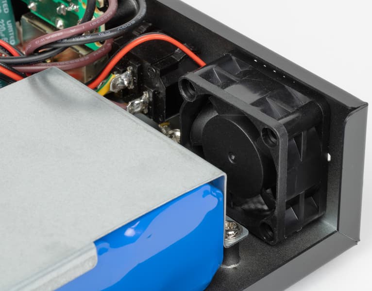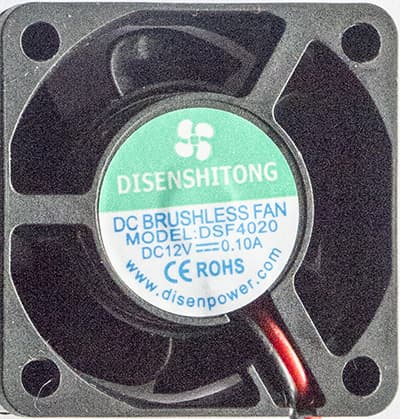 Вентилятор системы охлаждения размером 40×40×20 мм (12 В / 0,1 А) установлен как вытяжной.