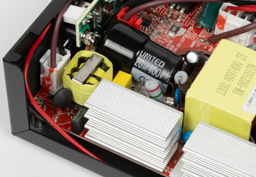 Шум: его источником является вентилятор, который в большинстве режимов включается и редко, и на непродолжительное время. Лишь когда суммарная нагрузка вплотную приближается к 100 ваттам, работа вентилятора становится регулярной, хотя и не постоянной.
