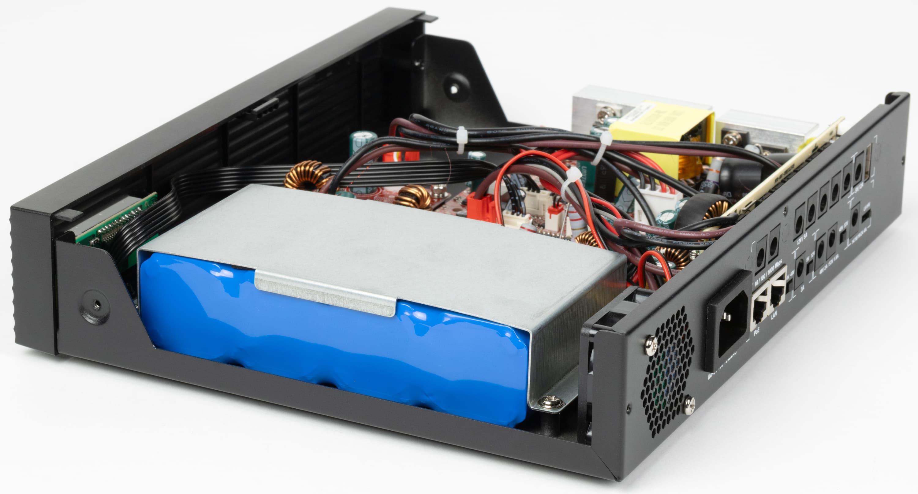 Но есть промежуточный класс источников — ИБП с AC-входом и DC-выходами, которые работают по алгоритму обычного «бесперебойника»: пока на входе всё хорошо — питаем нагрузки от внешней электросети через имеющийся преобразователь AC/DC, а на встроенную батарею переключаемся в случае каких-то неприятностей.