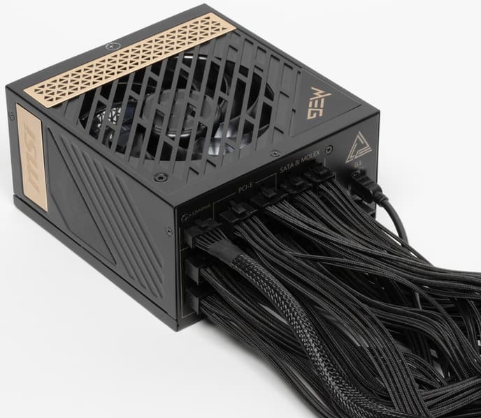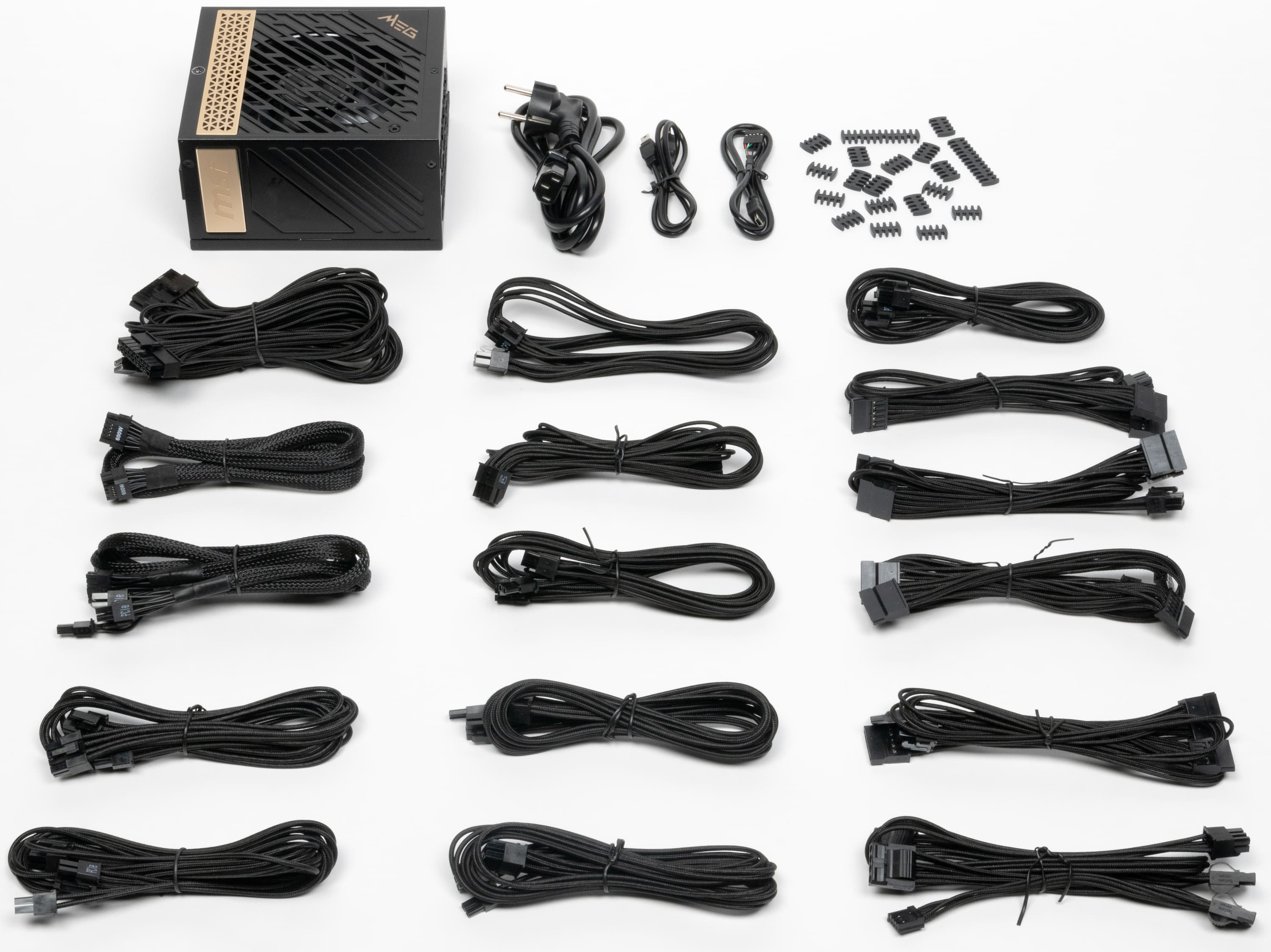 На мощности выше 850 Вт шум становится заметным и неприятным, но в реальных условиях компоненты, имеющие подобное потребление, сами по себе будут производить значительный шум. Длина проводов у БП достаточная для большинства современных корпусов, к тому же провода использованы мягкие и полностью съемные, что повышает удобство при сборке и дальнейшей эксплуатации. Также отметим возможность подключения видеокарты посредством разъема питания PCIe 5.0.