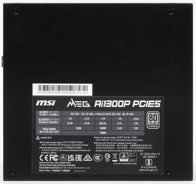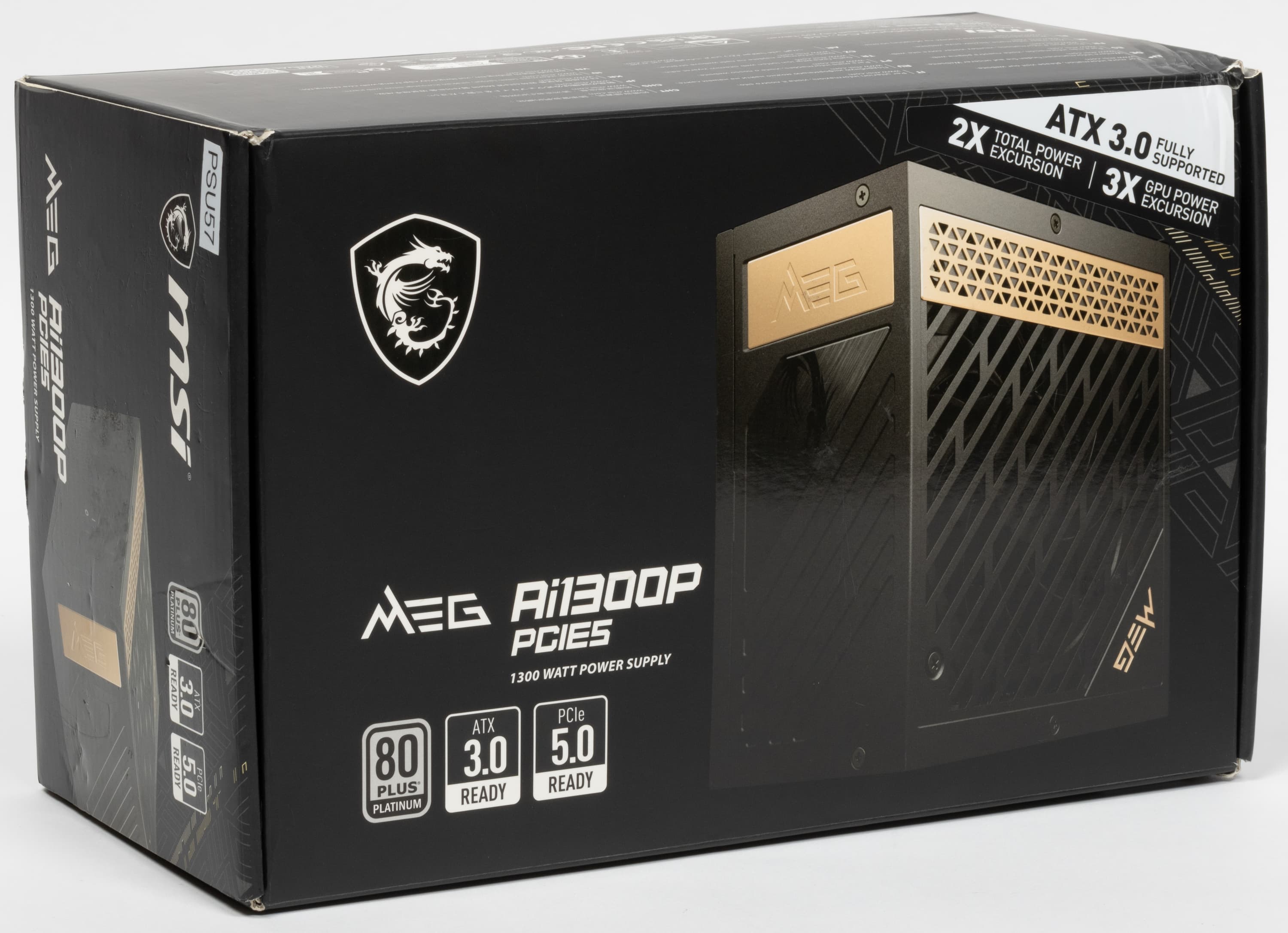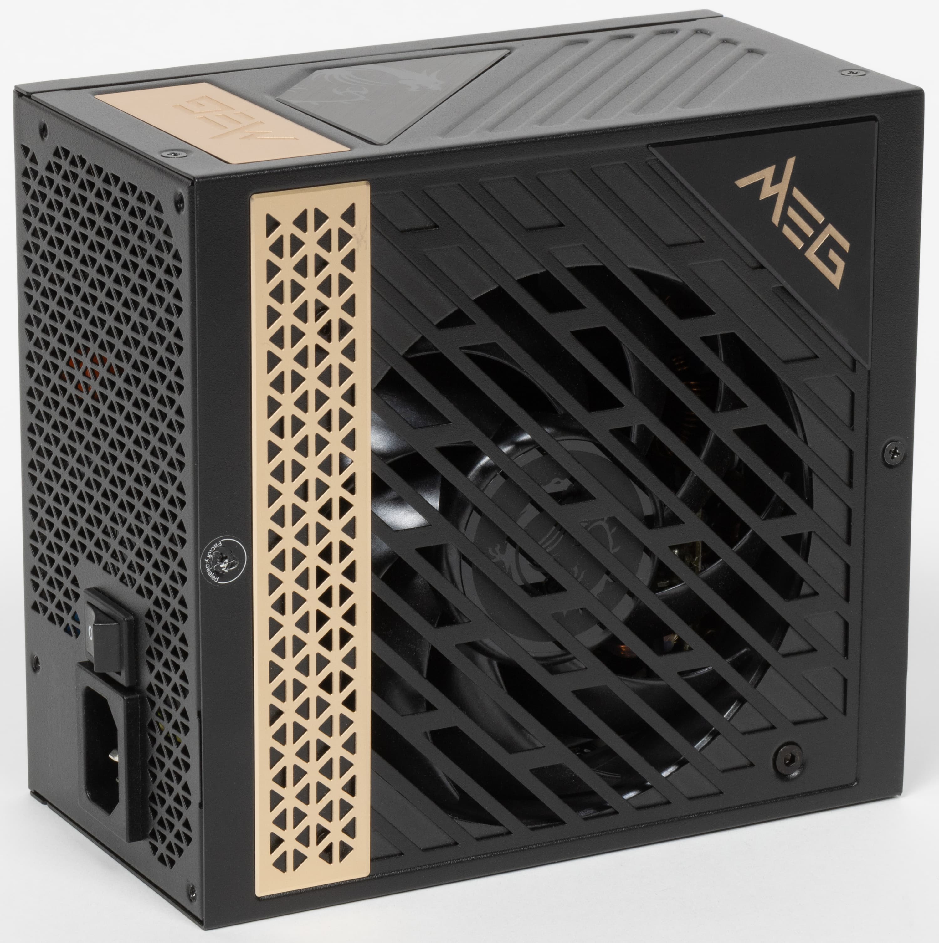 Топовый блок питания MSI MEG Ai1300P PCIE5 имеет сертификат 80+ Platinum и укомплектован исключительно японскими конденсаторами. Его система охлаждения по умолчанию работает в гибридном режиме, то есть при некоторых условиях вентилятор не вращается. Блок питания соответствует стандарту ATX 3.0 и позволяет питать очень мощные современные видеокарты через 16-контактный разъем PCIe 5.0 (12VHPWR). Дизайн выглядит весьма органично. Однако применение штампованной решетки над вентилятором чревато повышенным уровнем шума при работе. Сейчас тенденция такова, что штампованные решетки применяются всё чаще и чаще, так как они, видимо, проще в изготовлении, а БП с такими решетками чуть дешевле в производстве.