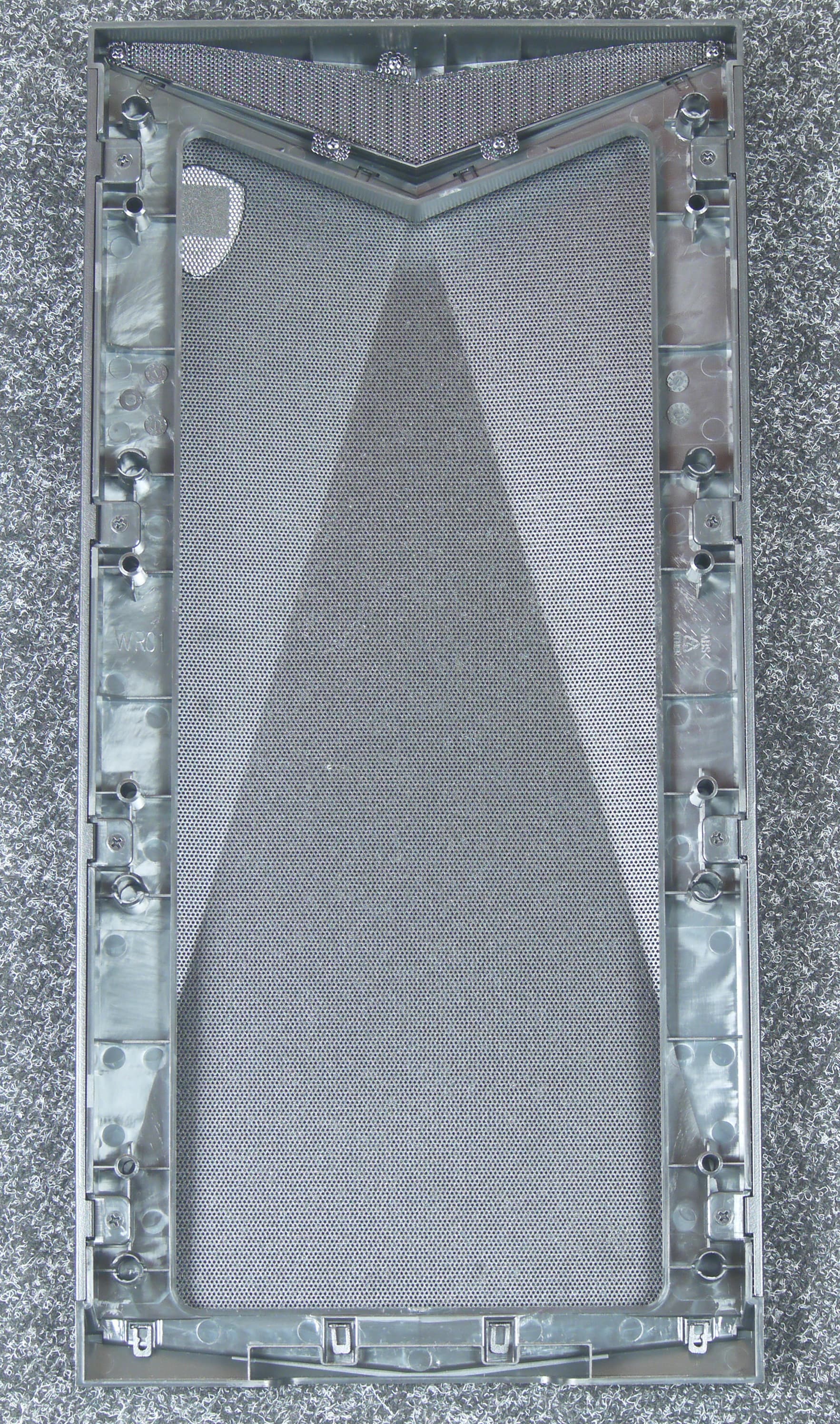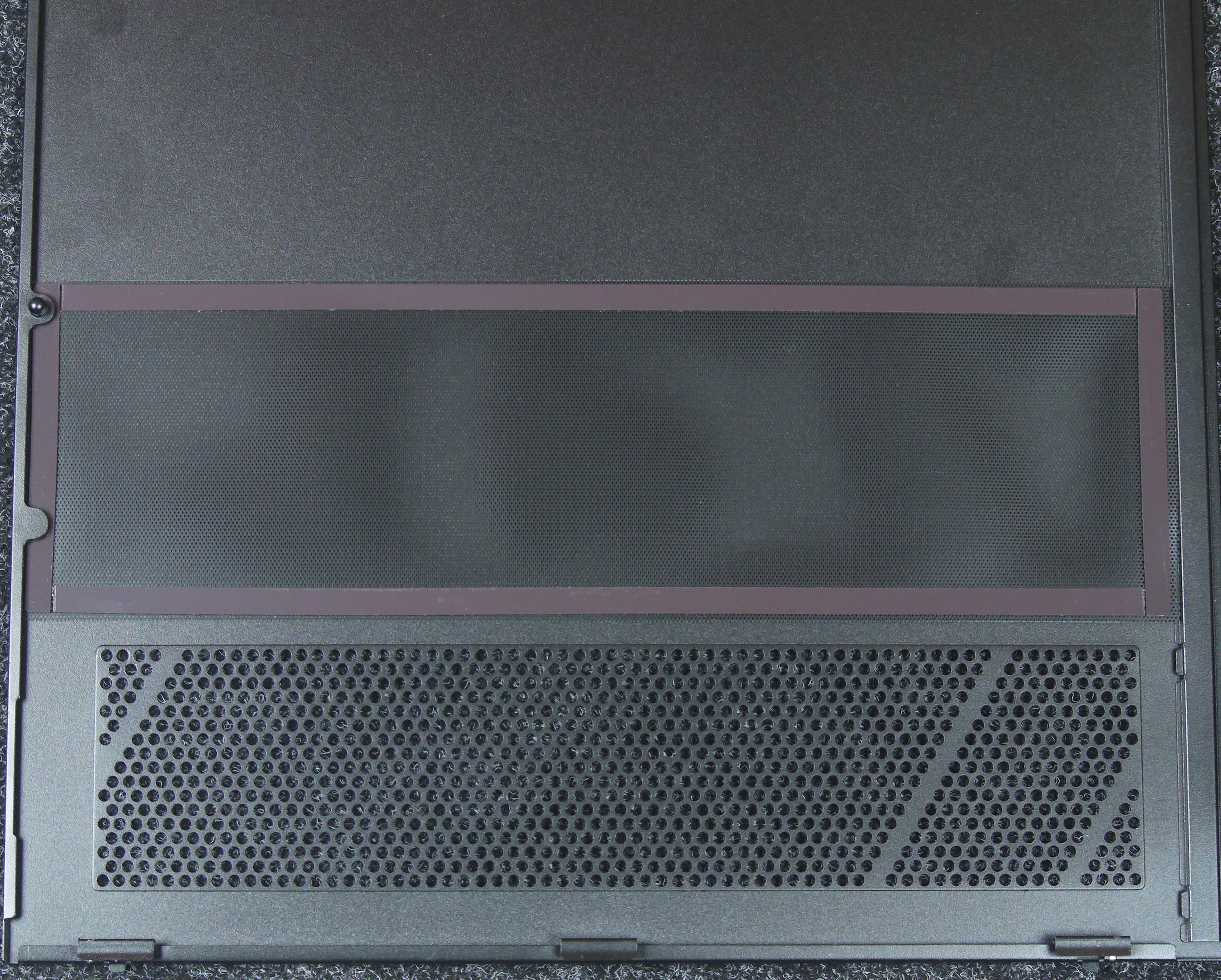 Аналогичным по конструкции фильтром оснащена изнутри область с отверстиями в нижней части правой (металлической) боковой стенки. Конечно, для обслуживания придется снимать эту стенку, но она фиксируется всего одним винтом.