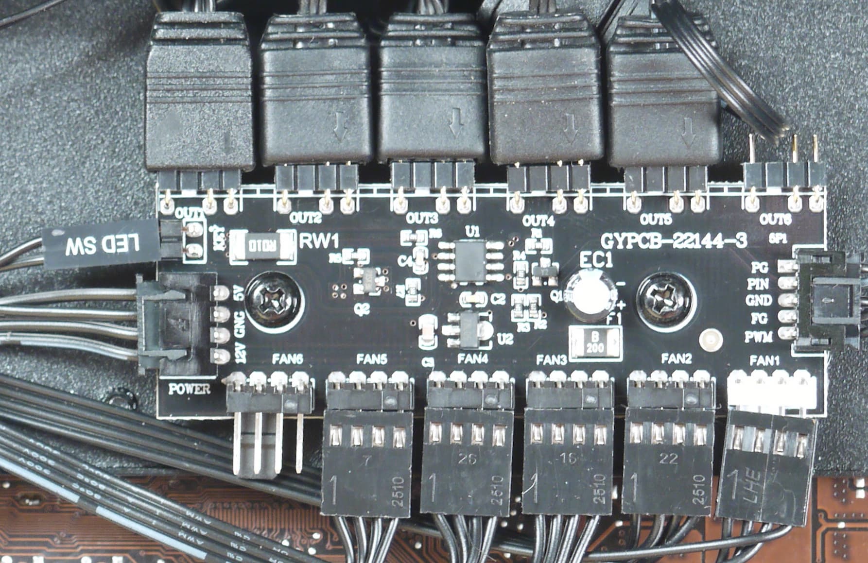 Контроллер, помимо подсветки, управляет еще и скоростью вращения вентиляторов с ШИМ (с четырехконтактными разъемами).